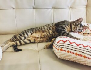 甘えん坊で、最近は私がトイレ掃除でかがんでいると必ず背中に乗って来て