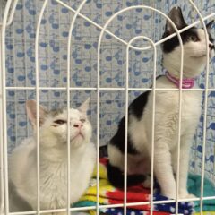 他の猫ちゃんとは仲良くなれず夜間はケージで過ごしていたヒビキくん。