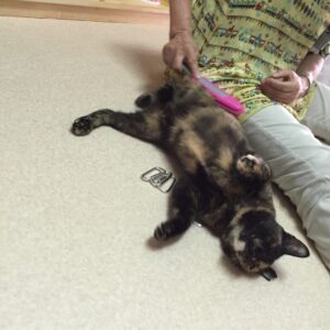 ビビちゃん思いっきり身体を伸ばして毛繕い^^