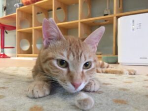 先住猫さんがいるお家なので相性の心配がありますが、プリンにとっては他に猫さんがいた方が慣れるのも早いと思います。