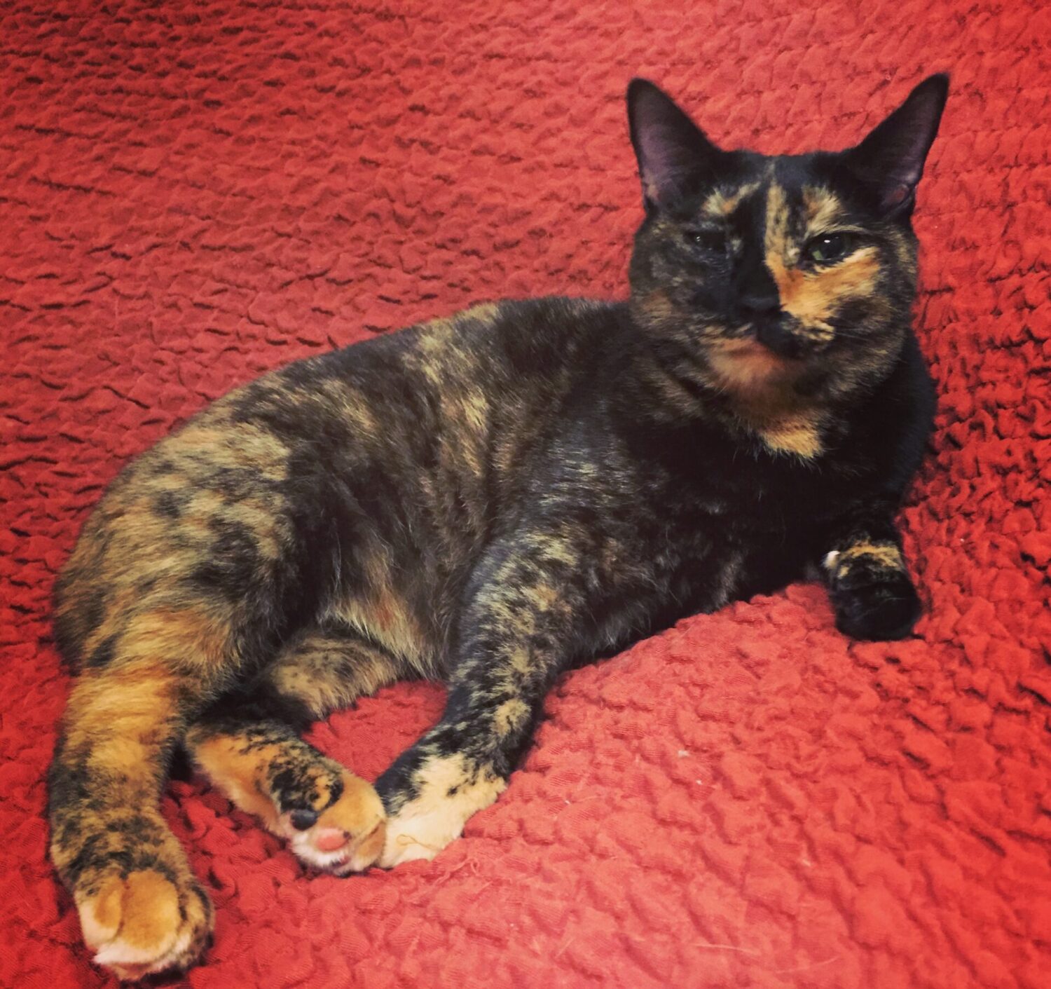 なかなか迫力のあるお顔のサビ猫ちゃんです(=^・^=)